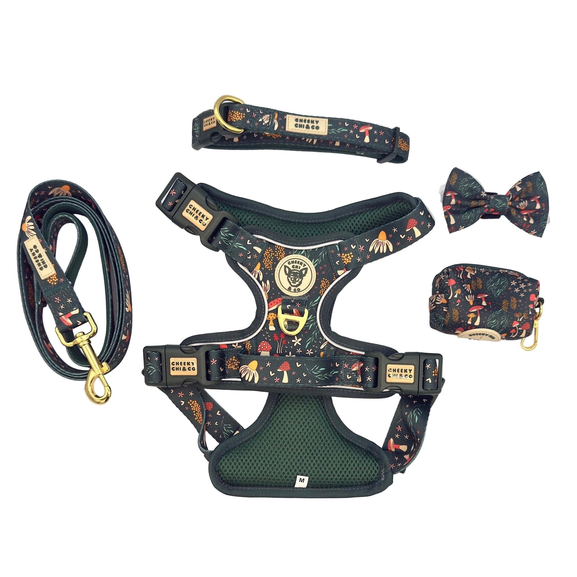 Adventure in style with the Woodland Wander Bundle, created for bigger dogs who love the great outdoors. With its rich dark green woodland print and durable Oxford-style harness, this set blends strength, comfort, and style.