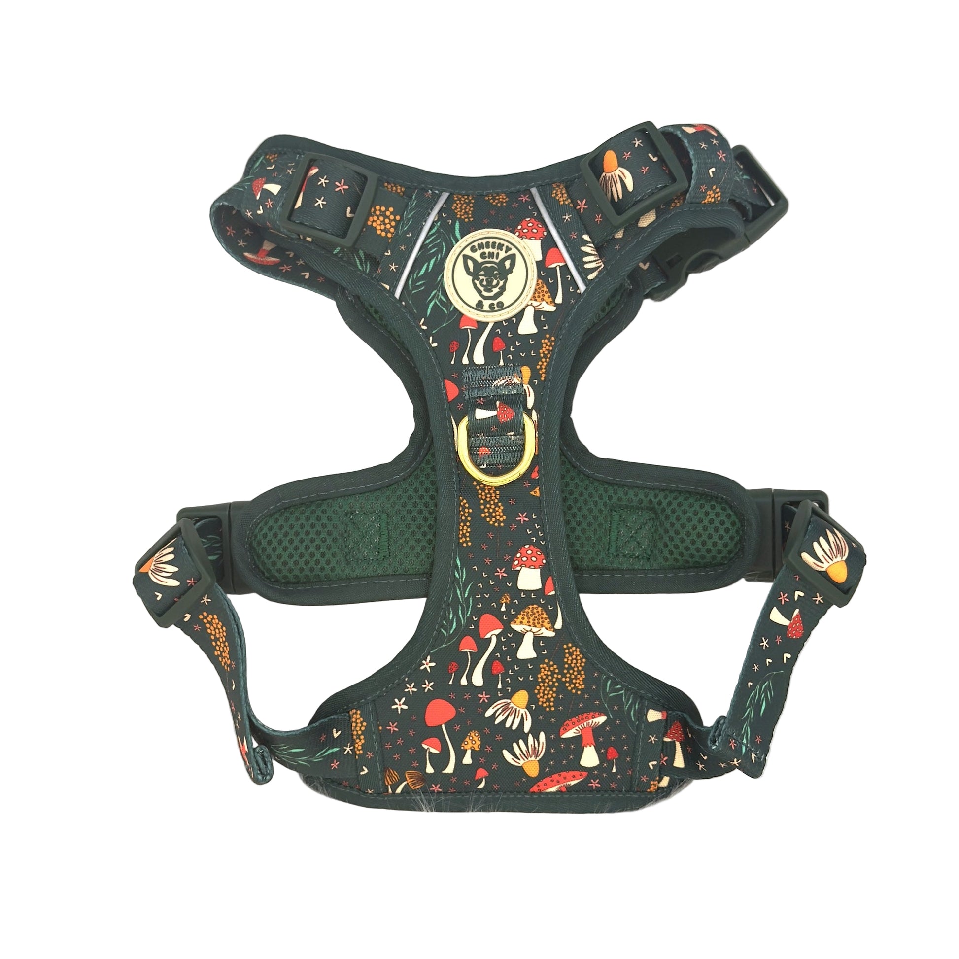 Our Woodland Wanderer Harness, a lush dark green design sprinkled with forest magic. Perfect for adventurous pups who love sniffing leaves, chasing shadows, and embracing their inner explorer.